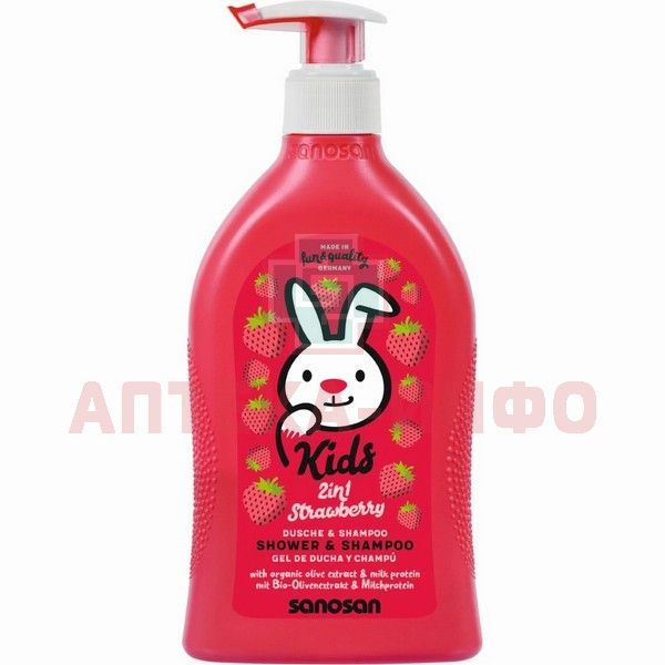 Гель для душа SANOSAN Kids с шампунем 2в1 Клубника 400мл Mann&Schreder/Германия
