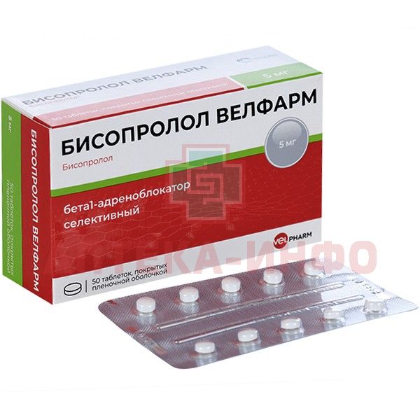 Бисопролол Велфарм таб. п/пл. об. 5мг №50 (10х5) Уралбиофарм