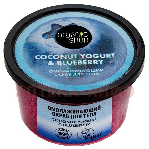 - ORGANIC SHOP COCONUT YOGURT&BLUEBERRY СКРАБ ДЛЯ ТЕЛА ОМОЛАЖИВАЮЩИЙ - Скраб для тела "Омолаживающий" мягко отшелушивает, активизирует процессы регенерации клеток, тонизирует и придает коже эластичность.