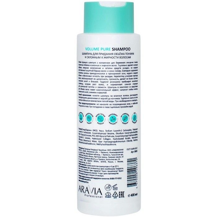 - ARAVIA PROFESSIONAL ШАМПУНЬ ДЛЯ ПРИДАНИЯ ОБЪЁМА ТОНКИМ И СКЛОННЫМ К ЖИРНОСТИ ВОЛОСАМ - формула экстраобъёма