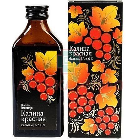 «Калина красная» - это целебный бальзам, основой которому послужил натуральный сок калины. Целебные свойства растений, входящих в состав бальзама, помогают победить простуду, грипп, повышенное давление и бессонницу. Помимо этого, бальзам «Калина красная» - прекрасный подарок. Уникальный и яркий дизайн упаковки «под хохлому» будет оценён любителями народных художественных промыслов. Специальная упаковка «Калины красной» была разработана дизайнерами к 80-летию со дня рождения великого русского писателя, актёра и режиссёра Василия Шукшина. Калиновый сок который лежит в основе бальзама - это известный диабетический продукт, положительно влияющий на работу таких жизненно важных органов, как сердце, печень и почки. Калина рекомендована при лечении простудных заболеваний и гриппа, а также при болезнях желудка. Содержание витаминов в соке калины очень высоко: например, аскорбиновой кислоты больше, чем в апельсинах и лимонах. Есть также бета-каротин, витамины А, Е, Р; минералы – кальций, калий, фосфор, магний, железо, медь, марганец, йод, ванадий, стронций и др. Калина богата натуральными сахарами и пектинами – именно эти вещества избавляют нас от последствий воздействия радиации и химических отравлений. Сок ягод калины помогает также при истерии, эпилепсии, климактерическом неврозе, атонических запорах, лихорадке и общей слабости организма. Калиной и ее соком лечат множество заболеваний, касающихся буквально всех органов и систем нашего организма: сердца, мозга, нервной и пищеварительной системы, лёгких, репродуктивной системы, сосудов, кожи. Улучшая работу сердца, калина нормализует пульс; снимает спазмы сосудов, снижает повышенное давление, благодаря способности снижать в крови уровень холестерина, калина может использоваться для профилактики и лечения атеросклероза. Сок калины принимают при аллергии и для предотвращения развития рака. Мята перечная, содержащая большое количество полезных эфирных масел, способствует лучшей работе желудка и снижению давления, а также стимулирует работу сердца.Так, польза мяты для деятельности сердца и кровообращения доказана и проверена временем, а саму мяту с успехом применяют для лечения легочных заболеваний. Мята используется как тонизирующее сердечное средство, снимающее сердцебиение, стимулирующее деятельность сердца и кровообращение, имеющее также потогонное свойство. Мяту применяют для борьбы с простудой и лихорадкой. Мелисса лекарственная, богатая витамином С, рекомендована для профилактики бессонницы, при головных болях, устранения чувства беспокойства и при упадке сил. Помимо всего этого, имеет мелисса полезные свойства, о которых знают очень многие – она природный антидепрессант, успокаивающе действующий на нервную систему. Ромашка аптечная, богатая минеральными и дубильными веществами, рекомендуется при простудах, для поддержания иммунитета и работоспособности, а также для уменьшения воздействия на организм человека никотина и кофеина. Ромашка обладает очень важными свойствами - она способна увеличивать выделение желудочного и кишечного соков; усиливать желчеотделение и возбуждать аппетит; оказывать умеренно спазмолитическое действие. Валериана лекарственная оказывает успокаивающий эффект на нервную систему, уменьшая раздражительность и нормализуя сон. В 