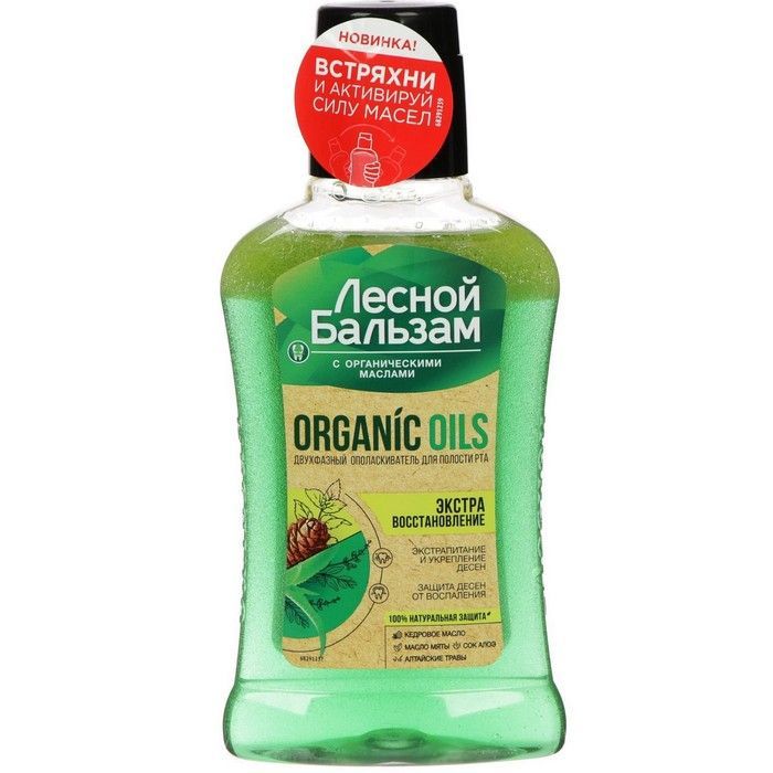 ЛЕСНОЙ БАЛЬЗАМ ОПОЛАСКИВАТЕЛЬ ДЛЯ ПОЛОСТИ РТА ДВУХФАЗНЫЙ С ОРГАНИЧЕСКИМИ МАСЛАМИ И АЛОЭ - представляет первую серию средств с органическими маслами для интенсивного восстановления и защиты зубов и дёсен с первого дня. Активируй силу масел и встряхни свой привычный уход за полостью рта! Двухфазный ополаскиватель для полости рта Лесной бальзам ЭКСТРАВОССТАНОВЛЕНИЕ с органическими маслами и соком алоэ :