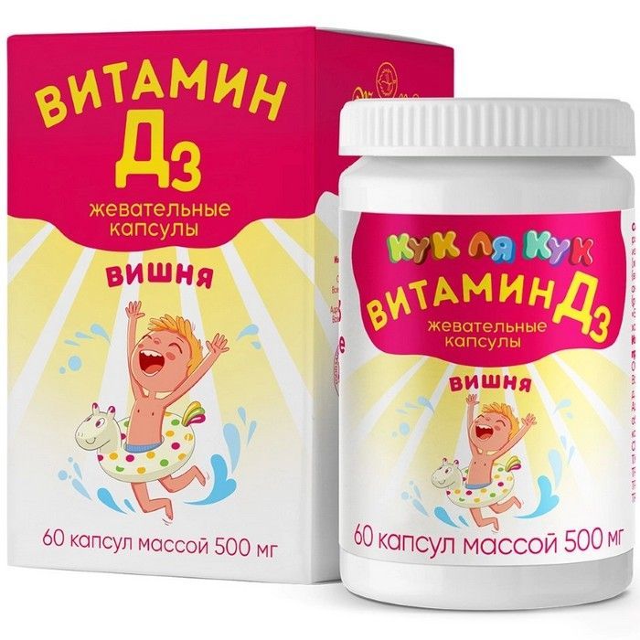 - КУК ЛЯ КУК ВИТАМИН D3 ДЕТСКИЕ ЖЕВАТЕЛЬНЫЕ КАПСУЛЫ СО ВКУСОМ ВИШНИ - биологически активная добавка , способствует восполнению дефицита витамина D3, улучшает усвоение кальция и фосфора, участвует в формировании костной системы, способствует укреплению и поддержанию иммунитета.
