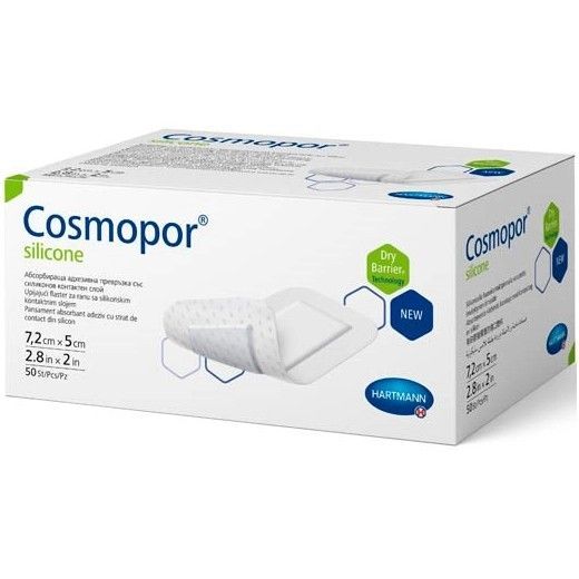 - Cosmopor® silicone/Кocмoпop силикон представляет собой неактивную одноразовую самоклеящуюся стерильную и полупроницаемую повязку на рану (гидроцеллюлярную тонкую повязку), состоящую из нетканого материала основы (материала-носителя) и впитывающей подушечки для раны. Обе части повязки покрыты силиконовым клеевым перфорированным слоем и защищены пленкой.