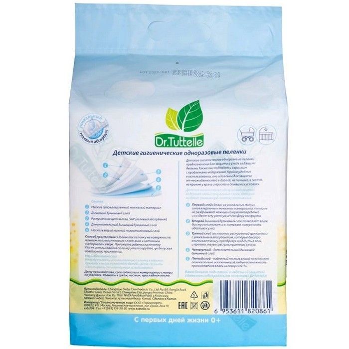 - DR TUTTELLE ПЕЛЕНКИ ОДНОРАЗОВЫЕ ДЕТСКИЕ ГИГИЕНИЧЕСКИЕ - 5 (пяти) слойные с уникальным гелевым абсорбентом