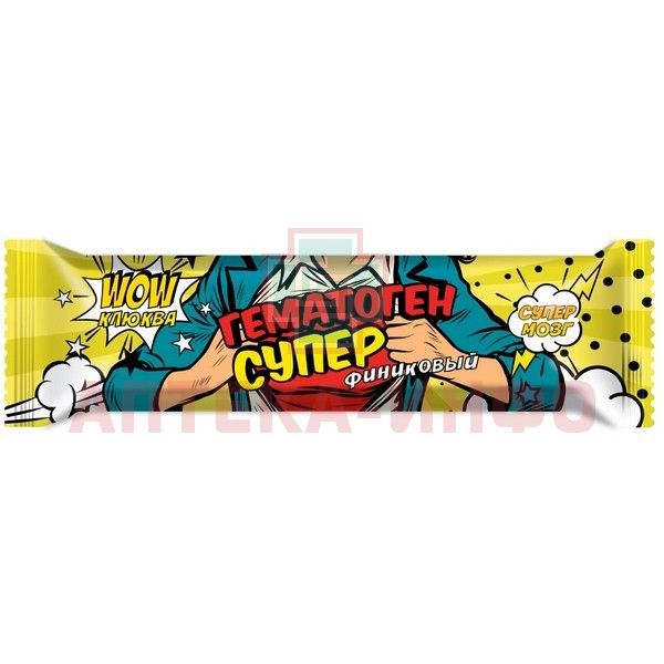 - ГЕМАТОГЕН СУПЕР ФИНИКОВЫЙ С КЛЮКВОЙ - Биологически активная добавка (БАД) к пище - источник железа, стимулятор кроветворения.