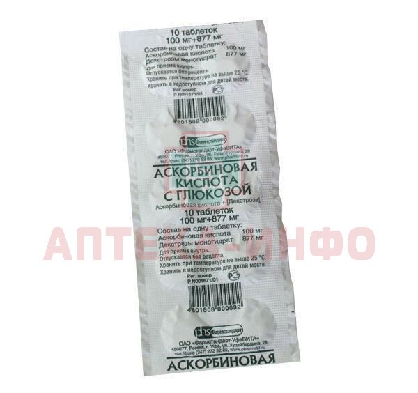 Таблетки аскорбиновой кислоты с глюкозой [100 мг+877мг].