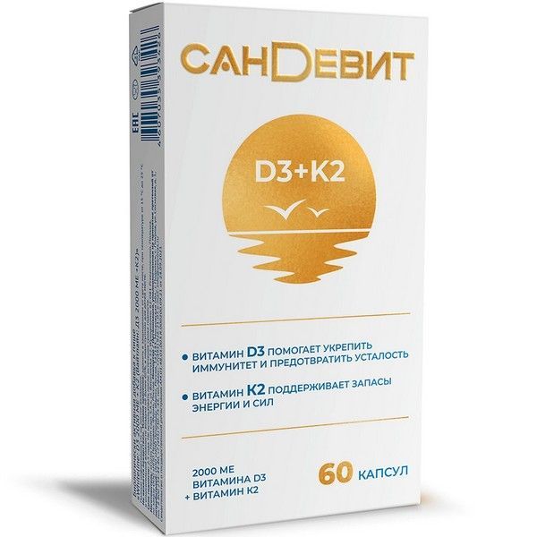 - САНДЕВИТ (СанDевит - SunDevit) - Биологически активная добавка (БАД) к пище - дополнительный источник витамина D3, K2 - 2000 МЕ ВИТАМИНА D3 + ВИТАМИН К2