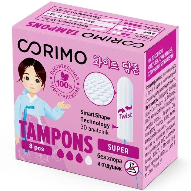 - Современные и технологичные тампоны Corimo разработаны совместно с лабораторией в Южной Корее.