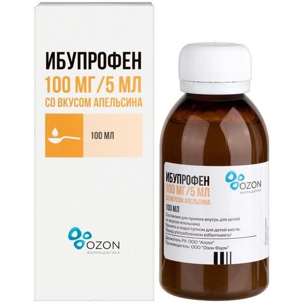 Ибупрофен фл.(сусп. д/приема внутрь д/детей апельсиновая) 100мг/5мл 150мл №1 Озон Фарм