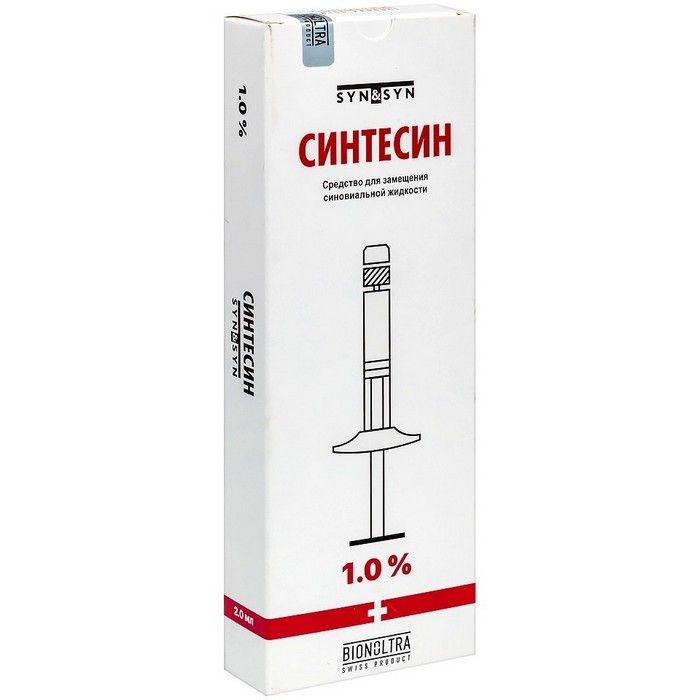 - Средство для замещения синовиальной жидкости 1% по 2 мл в шприц - 1 шприц и 1 игла инъекционные одноразовые стерильные вместе с инструкцией по применению в пачке из картона.