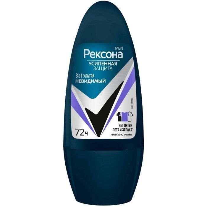 Дезодорант антиперспирант мужской Рексона Мен шариковый Ультраневидимый 3в1'' на основе улучшенной^ формулы обеспечивает устранение запаха и пота на 72 часа*.