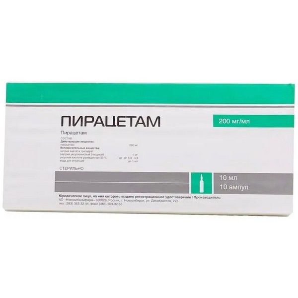 Пирацетам амп.(р-р д/в/в введ.) 200мг/мл 10мл №10 короб.карт. Новосибхимфарм