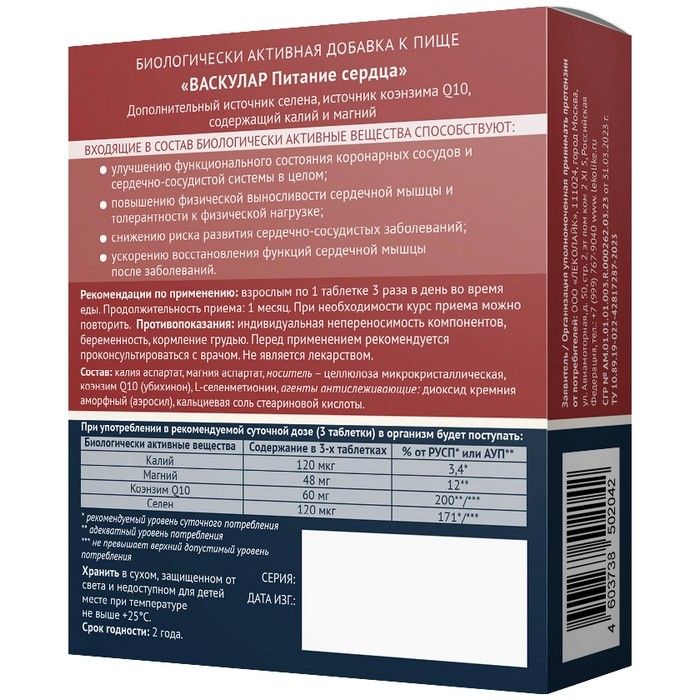 LEKOLIKE Васкулар Питание сердца таб. №60 Биостандарт