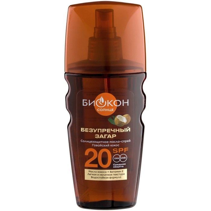 - БИОКОН Солнцезащитное масло-спрей «Гавайский кокос» SPF 20.