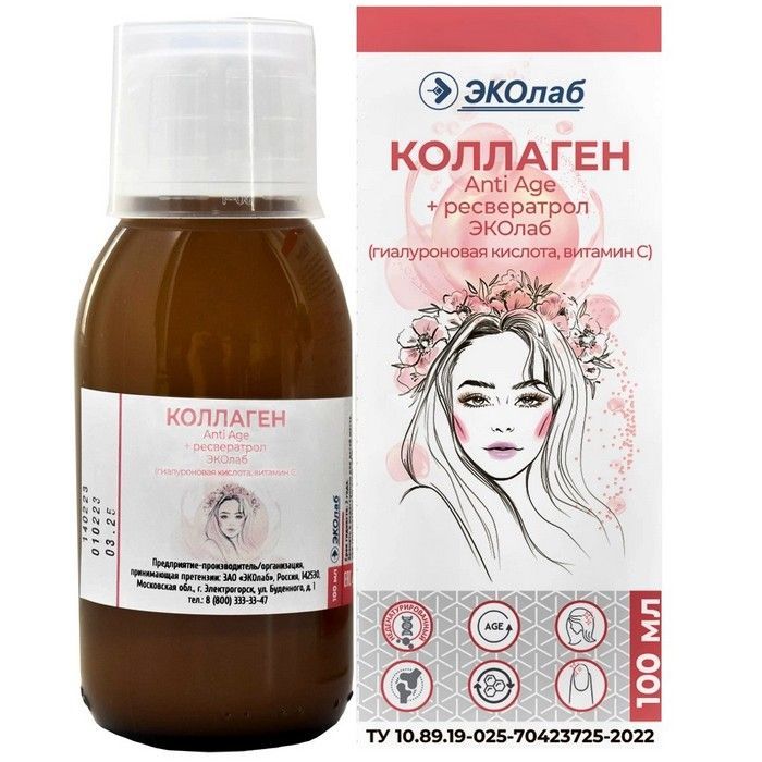 Коллаген ANTI-AGE+Ресвератол Эколаб фл.(жидк. внутр.) 100мл Эколаб/Россия