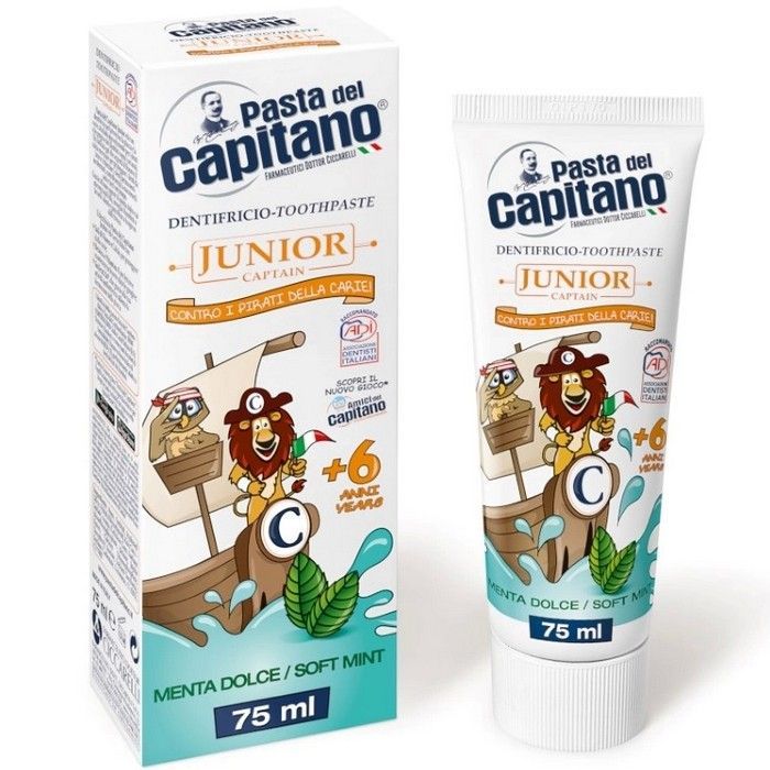 - Детская зубная паста Pasta del Capitano Junior Soft Mint +6 / Мятная .
