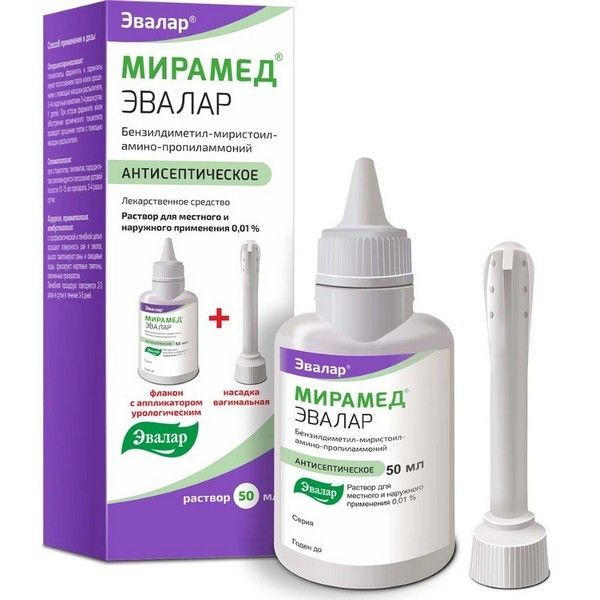 Мирамед Эвалар фл. (р-р д/мест. и наруж. прим.) 0,01% 50мл + насадка вагин. Эвалар