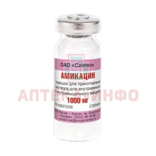 Амикацин фл.(пор. д/приг. р-ра д/в/в и в/м введ.) 1г №50 Синтез