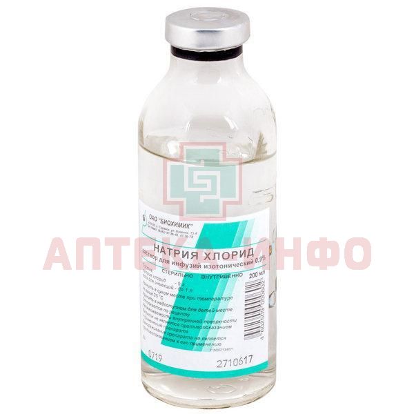 Натрия хлорид р-р д/инф.изотонический 0,9% бут.(р-р д/инф.) 0,9% 200мл №1 Биохимик