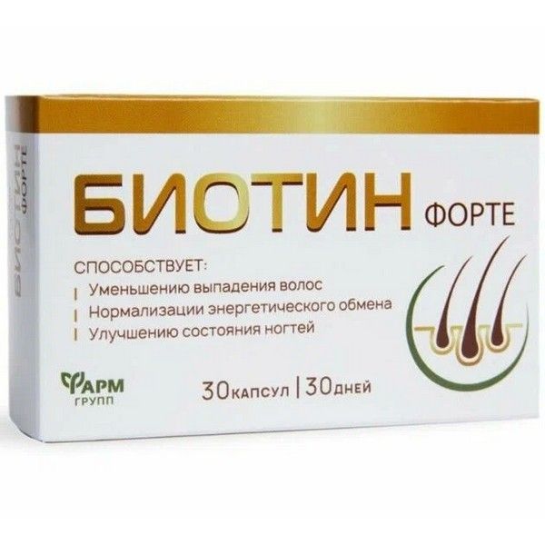 Биотин Форте способствует: росту волос и уменьшению их выпадения, уменьшению ломкости ногтей, а также нормализации энергетического обмена.