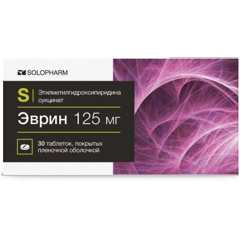- Препарат Эврин содержит действующее вещество этилметилгидроксипиридина сукцинат, который относится к группе препаратов, применяемых для лечения заболеваний нервной системы.
