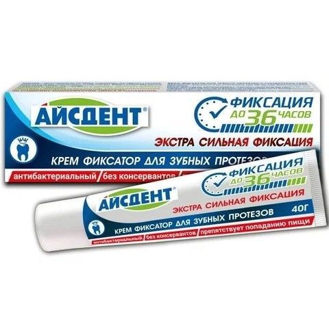 - Крем-фиксатор зубных протезов «АЙСДЕНТ» - это уникальный продукт, который обеспечивает надежную фиксацию зубных протезов и заботу о полости рта. Крем разработан для людей, которым нужна длительная и надежная фиксация и защита десен.