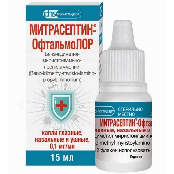 - Препарат МИТРАСЕПТИН®-ОфтальмоЛОР содержит действующее вещество - бензилдиметил-миристоиламино-пропиламмония хлорида моногидрат. Является средством для лечения заболеваний глаз, уха и носа, вызванных патогенными микроорганизмами.
