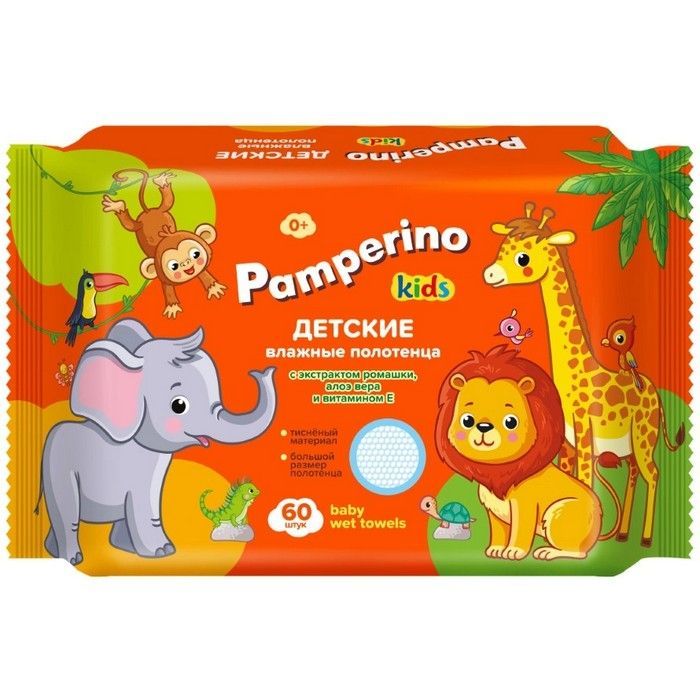 - PAMPERINO ПОЛОТЕНЦА ВЛАЖНЫЕ ДЕТСКИЕ УНИВЕРСАЛЬНЫЕ С ЭКСТРАКТОМ РОМАШКИ АЛОЭ И ВИТАМИНОМ Е - тиснёный материал, большой размер полотенца