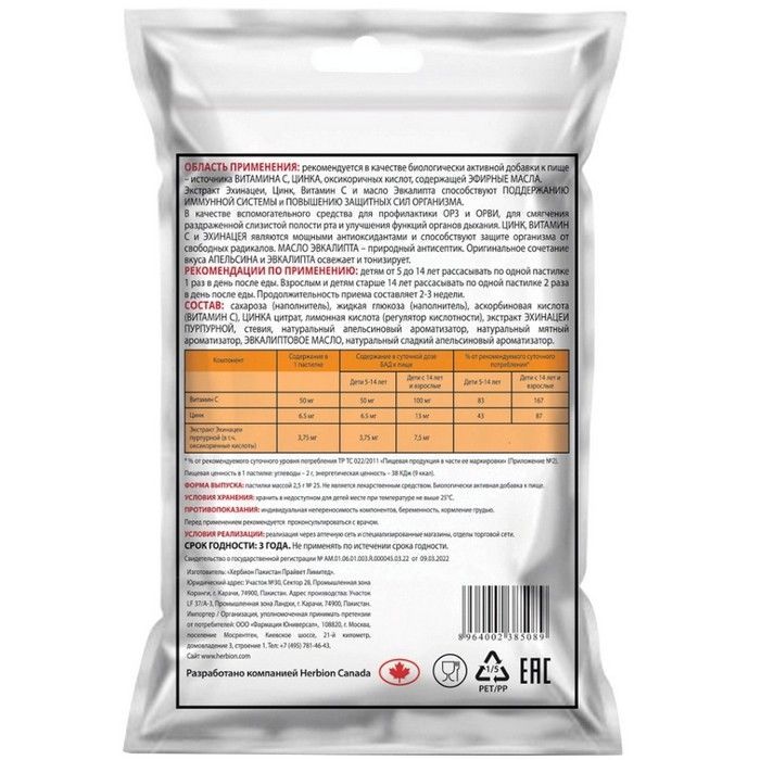- HERBION ИММУНО ЭХИНАЦЕЯ ВИТАМИН С, ЦИНК, АПЕЛЬСИН - Биологически активная добавка (БАД) к пище - способствуют поддержанию иммунной системы и повышению защитных сил организма.