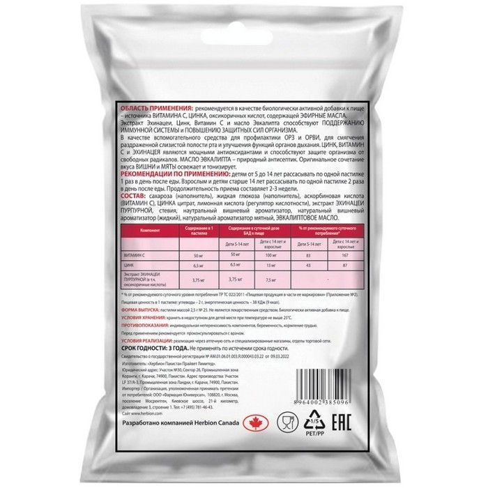 - HERBION ИММУНО ЭХИНАЦЕЯ ВИТАМИН С, ЦИНК, ВИШНЯ - Биологически активная добавка (БАД) к пище - способствуют поддержанию иммунной системы и повышению защитных сил организма.