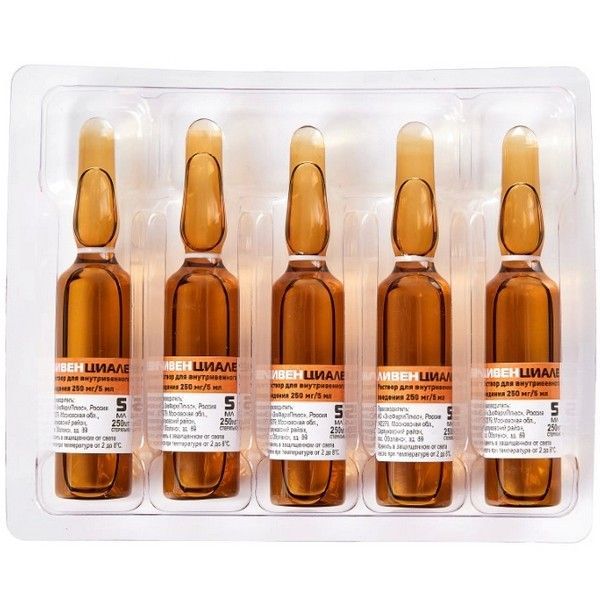 - Раствор для внутривенного введения 250 мг/5 мл по 5 мл препарата в ампулы темного стекла - 5 шт в уп., вместе с инструкцией по применению в пачку картонную.