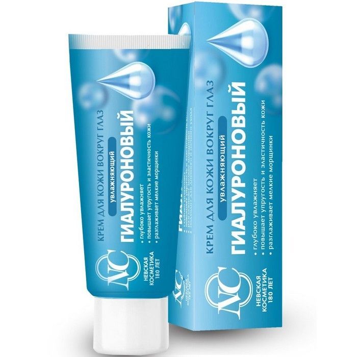 - Крем вокруг глаз "Невская Косметика Гиалуроновый" - эмульсия белая, легкой консистенции.