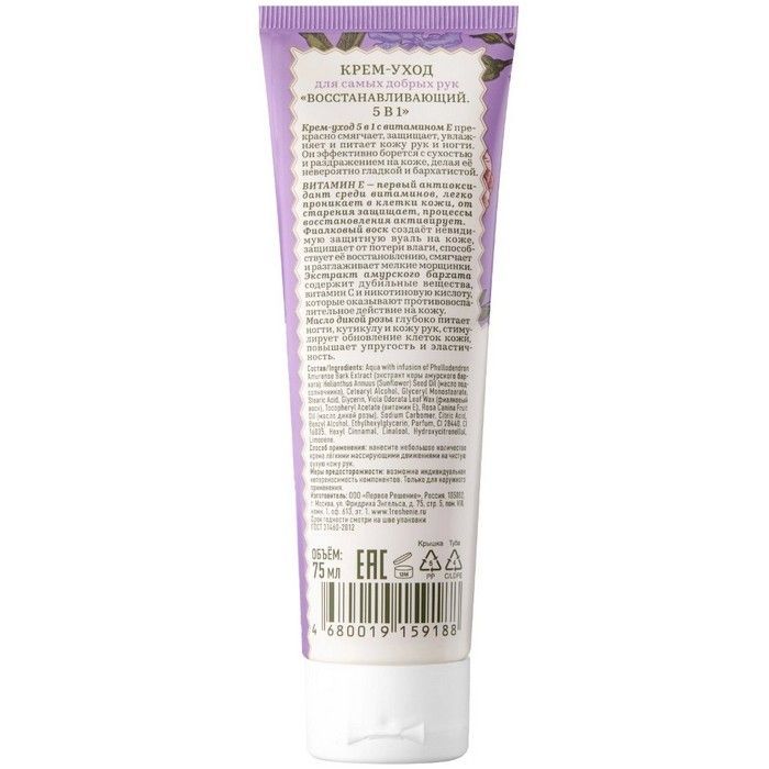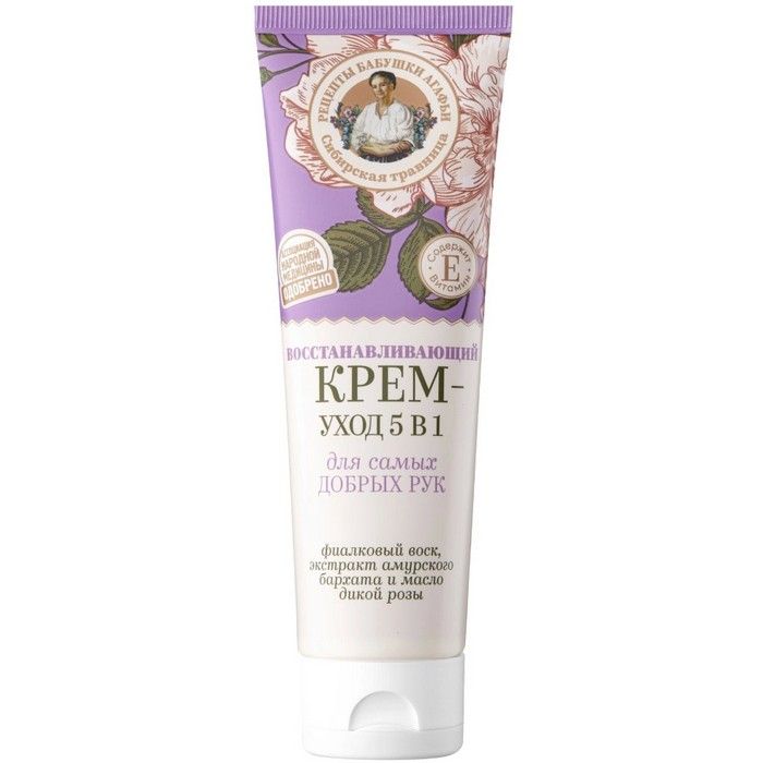 - Рецепты Бабушки Агафьи Сибирская травница Крем-уход для самых добрых рук Восстанавливающий. 5 в 1 с витамином Е.