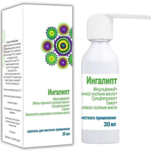 - Противопоказано применение препарата Ингалипт при беременности и в период грудного вскармливания. В состав препарата входят сульфаниламиды, которые проникают через плаценту и обнаруживаются в крови плода. Возможно развитие тератогенного действия. При необходимости использования препарата в период грудного вскармливания необходимо прекратить грудное вскармливание, т.к. сульфаниламиды проникают в грудное молоко и могут вызвать ядерную желтуху у новорожденных.