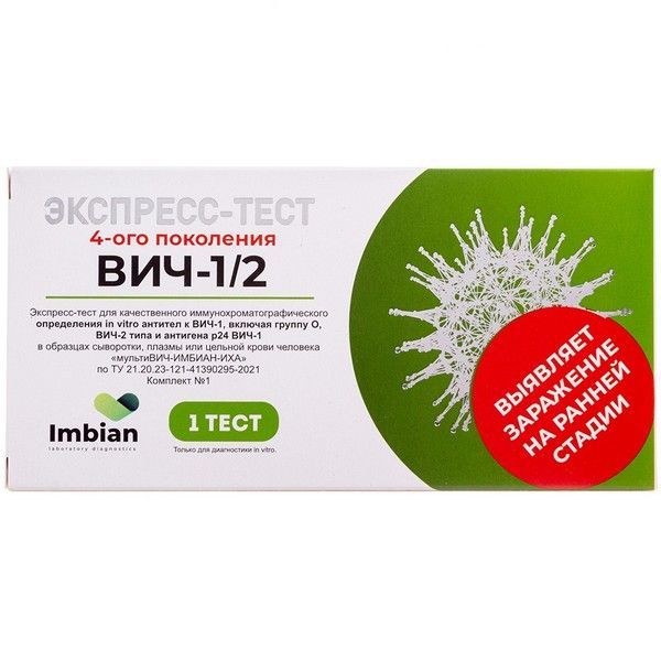 Экспресс-тест д/опред. АТ(ВИЧ 1/2) и АГ(ВИЧ-1) в сывор. (плазме) и цельной крови Имбиан Лаб/Россия