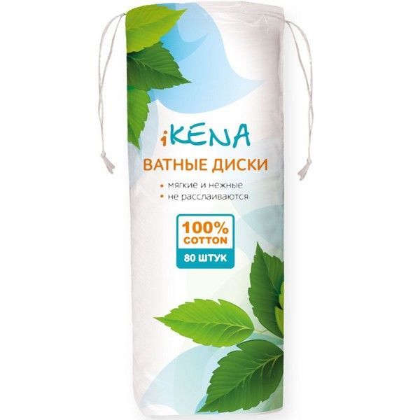 Диски iKENA из белоснежного хлопка, обработанного без применения хлора, нежно и бережно ухаживают за кожей, отлично впитывают влагу и косметические средства, не оставляют ворсинок, дарят ощущение чистоты и комфорта.