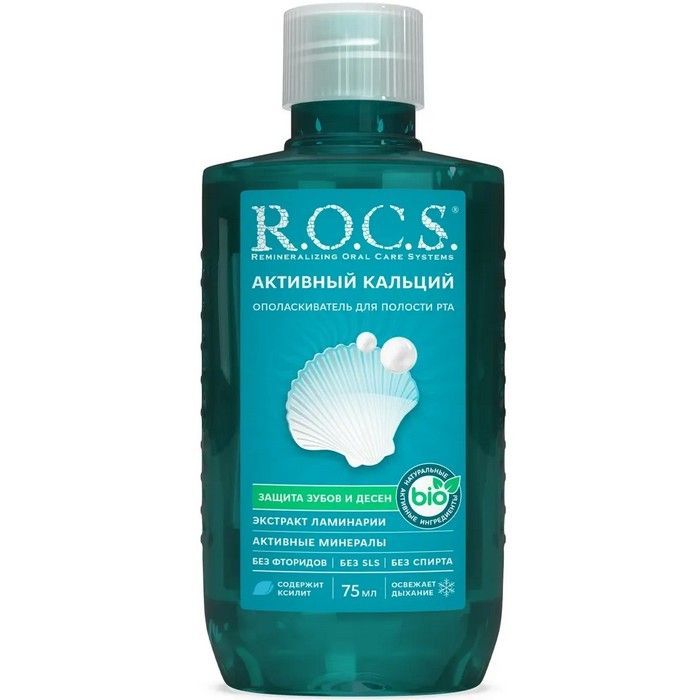 - Лечебно-профилактический ополаскиватель полости рта R.O.C.S. «Активный Кальций» предназначен для укрепления зубов и десен, восстановления минеральной насыщенности эмали, снижения риска воспалительных процессов и профилактики кариеса. Продукт изготовлен на основе натуральных природных компонентов и безопасен при случайном проглатывании; не содержит красители, фтор, лаурилсульфат натрия и спирт.