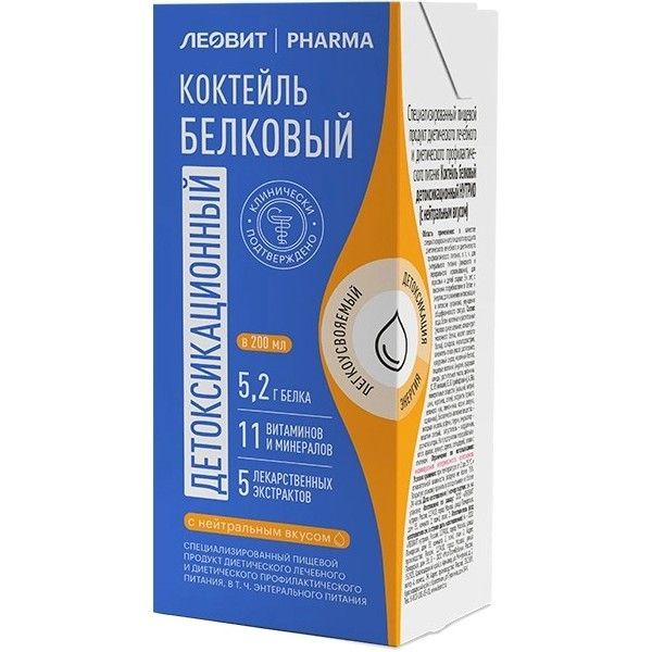 - ЛЕОВИТ PHARMA КОКТЕЙЛЬ БЕЛКОВЫЙ ДЕТОКСИКАЦИОННЫЙ НУТРИО С НЕЙТРАЛЬНЫМ ВКУСОМ - Энтеральное питание ЛЕОВИТ PHARMA показано при различных заболеваниях, травмах, операциях, возрастных нарушениях для дополнительной нутритивной поддержки организма.
