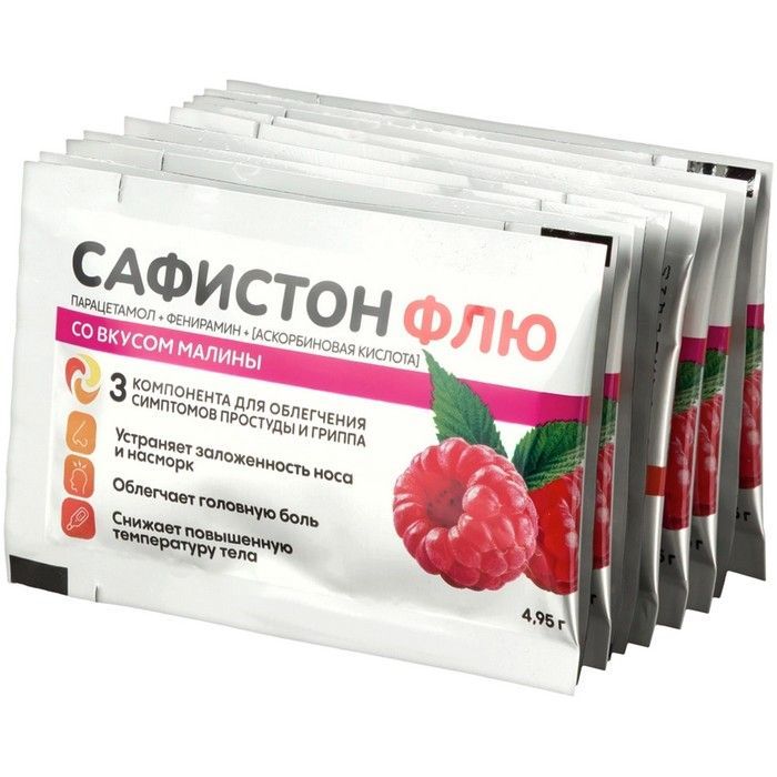 Сафистон Флю пак.(пор. д/приг. р-ра д/приема внутрь) 4,95г №10 (малина) Озон
