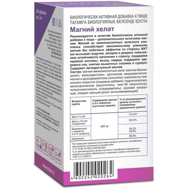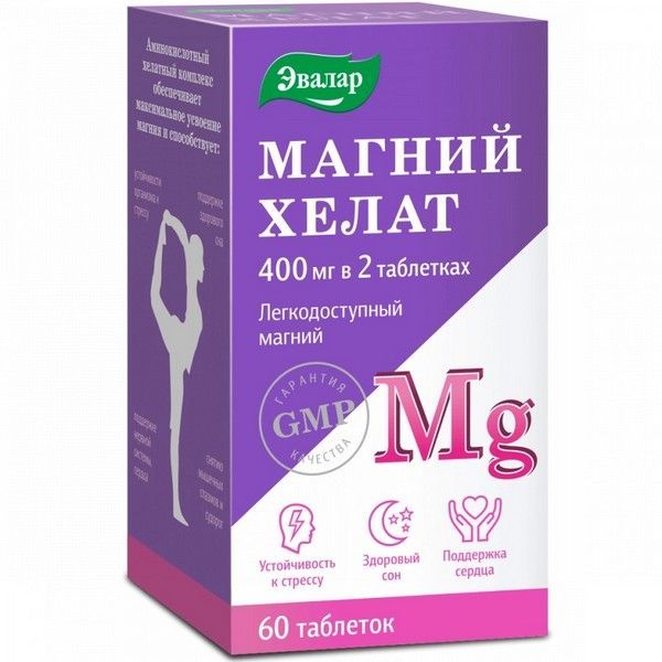 - Для максимального усвоения* магния попробуйте легко усваиваемый хелатный комплекс Магний хелат Эвалар.