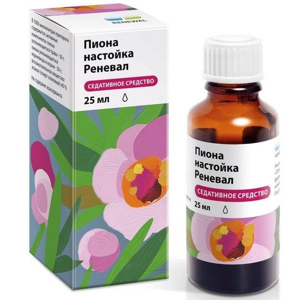 - Лекарственный препарат Пиона настойка Реневал применяют в качестве седативного средства при нарушениях сна, повышенной нервной возбудимости,