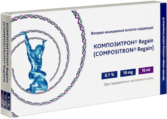 - Композитрон® Regain материал инъекционный коллаген-содержащий 1 мг/мл (0,1%) , в шприце по 10 мл.