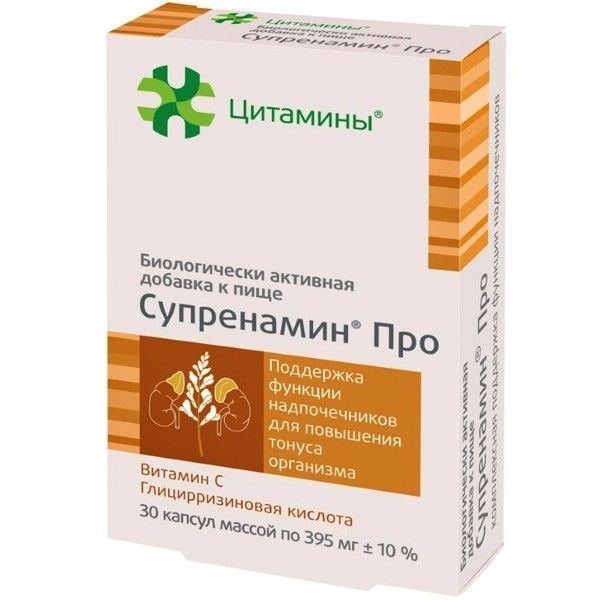 - Супренамин Про создан для комплексной поддержки функции надпочечников, а также для повышения устойчивости организма к неблагоприятным внешним факторам. Одна капсула содержит в себе дневную дозу глицирризиновой кислоты и витамина С, а также усиленный комплекс белков и нуклеопротеидов.