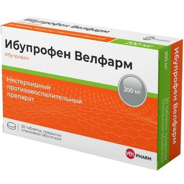 Ибупрофен Велфарм таб. п/пл. об. 200мг №20 Велфарм-М/Россия
