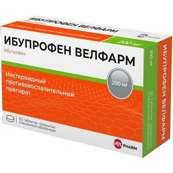Ибупрофен Велфарм таб. п/пл. об. 200мг №50 Велфарм-М/Россия