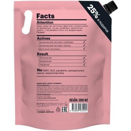 - ORGANIC SHOP МЫЛО ЖИДКОЕ CREAMY STRAWBERRY 2000МЛ