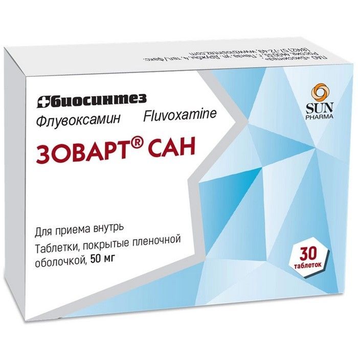 - ЗОВАРТ® САН содержит действующее вещество флувоксамин, которое относится к группе антидепрессантов, называемых селективными ингибиторами обратного захвата серотонина (СИОЗС).