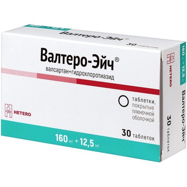 Валтеро-Эйч таб. п/пл. об. 160мг+12,5мг №30 (3х10) Hetero Labs/Индия/Макиз-Фарма
