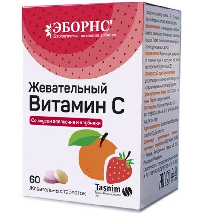 Эборнс Витамин С таб. жев. №60 (апельсин/клубника) Tasnim pharmaceutical/Австрия